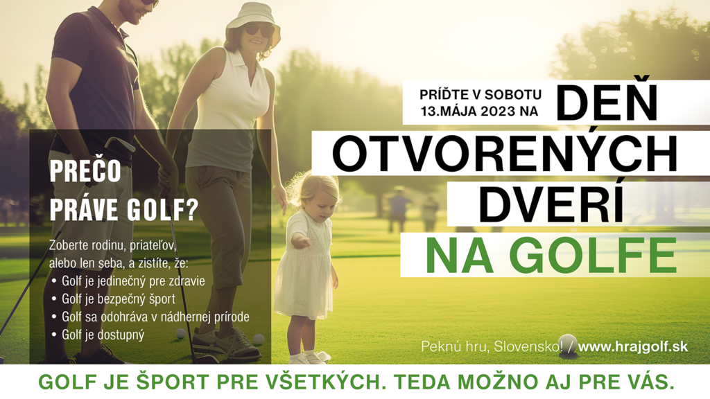 Vyberte sa v sobotu 13. mája na jedno zo zapojených ihrísk vo vašom okolí, vezmite tých, ktorí sú vám najmilší a prežite spolu príjemný deň v prostredí nádhernej prírody pri jednom z najzdravších športov vôbec – pri golfe.