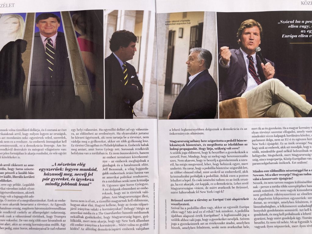 Návštevu v krajine využil Tucker poriadne. Svoje denné relácie vysielal z centra Budapešti, čo pre nášho suseda znamenalo viac ako turistická reklama na CNN. Vrcholom bol, samozrejme, rozhovor s Orbánom.