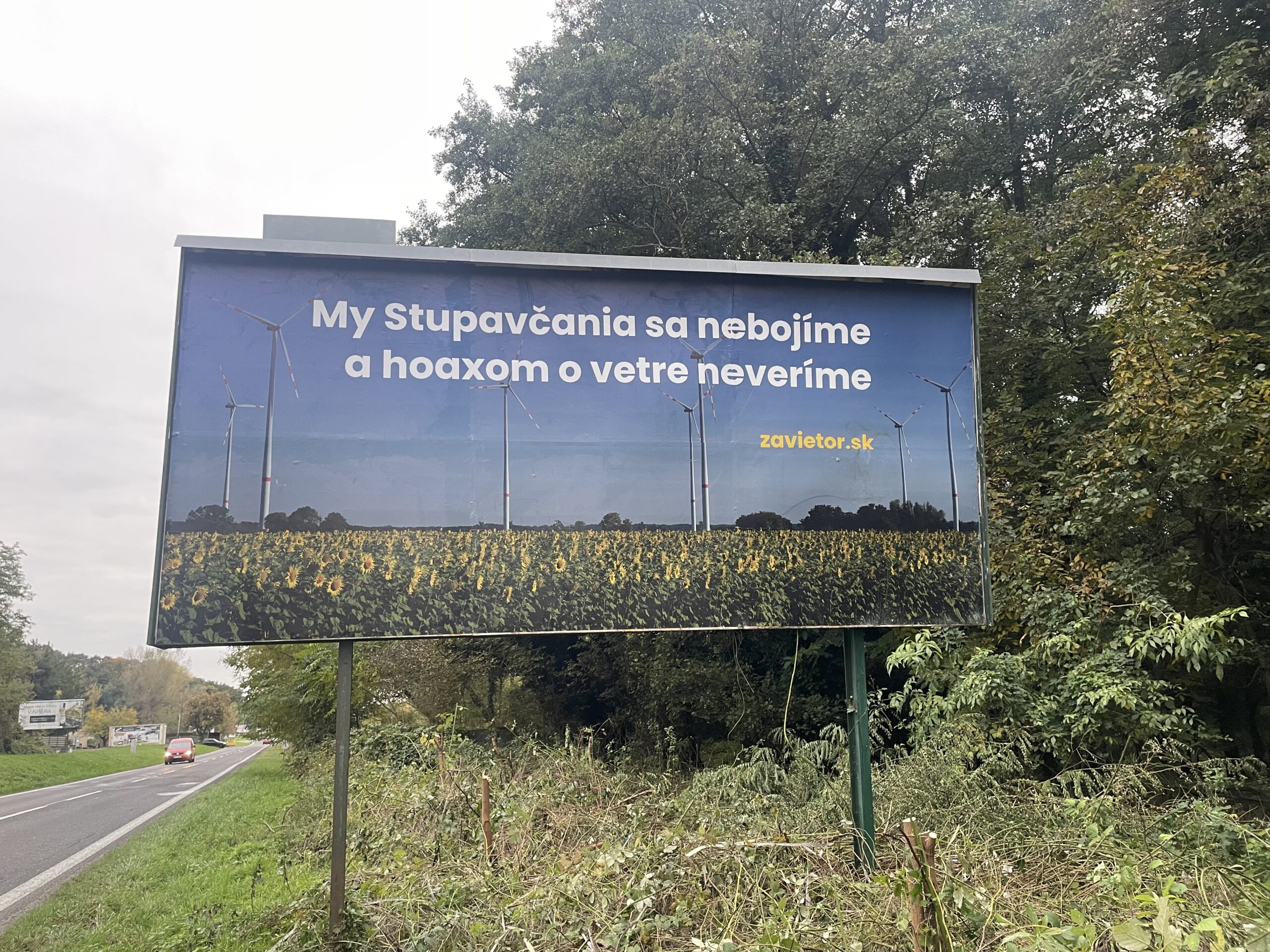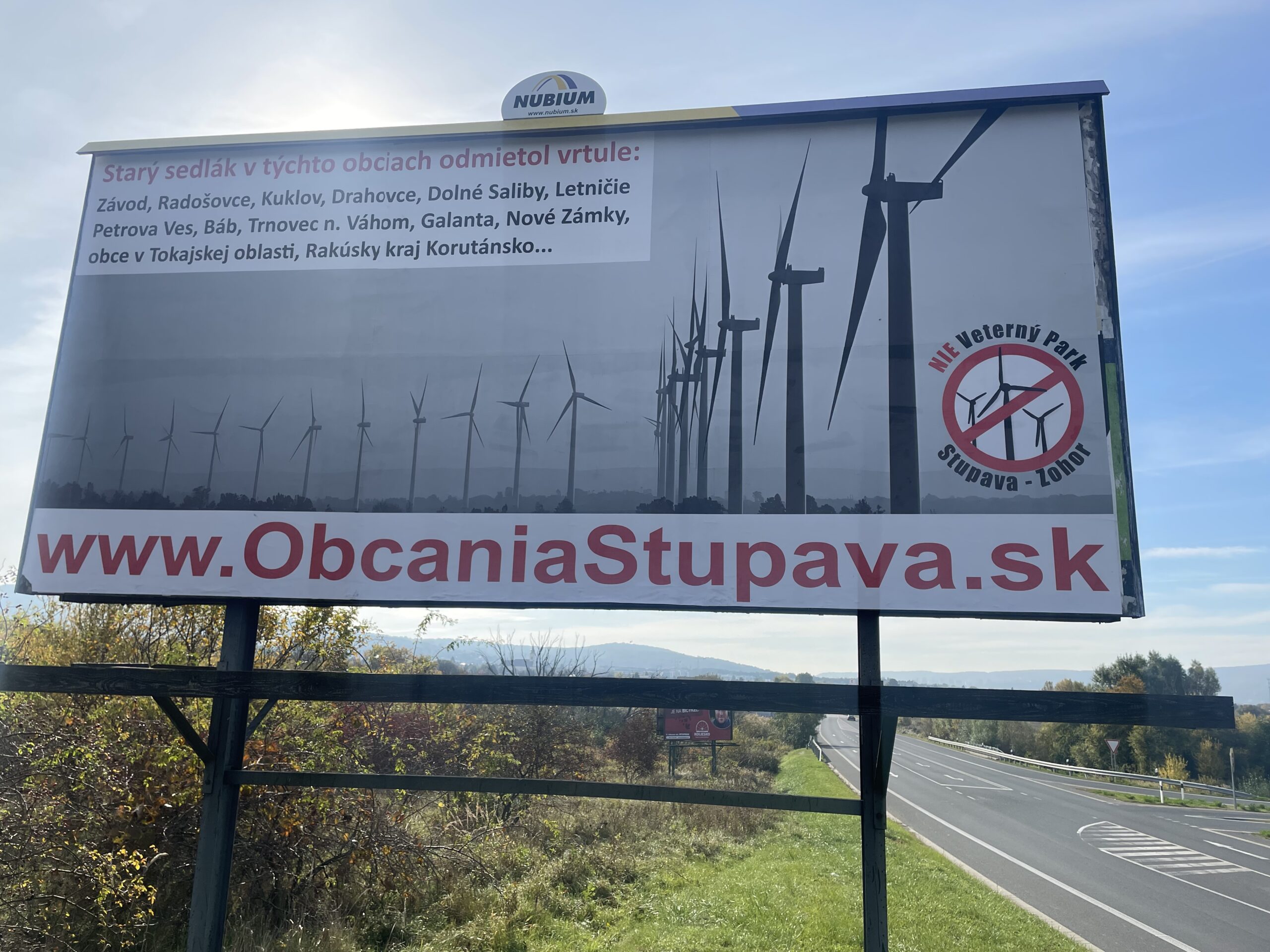 Reakcia obyvateľov opačného názoru na seba nenechala dlho čakať, a tak vznikol na druhom konci Stupavy bilbord, ktorý dáva „áno“ veternému parku.