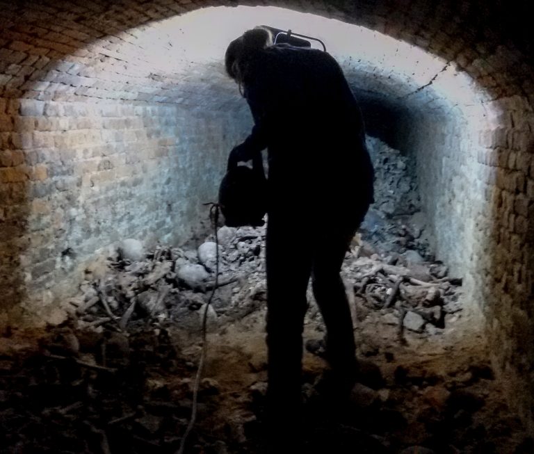 Zatiaľ čo v spodných vrstvách sa zachovali celé kostry, horné vrstvy sú chaotickou zmesou kostí mnohých pacientov spolu s tmavým, pôde podobným zvyškom ľudského tkaniva a mikroskopickým kostným prachom. Tento neporiadok vznikol v dôsledku dlhodobého využívania krypty a neustáleho boja nemocnice s nedostatkom miesta na pochovávanie.