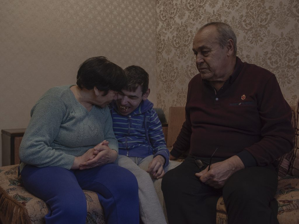 Oľha Demydovová, 43-ročná sociálna pracovníčka z ukrajinskej charity Kultúra demokracie, ho nedávno navštívila, aby zistila, čo jeho rodina potrebuje. Sedel na gauči so svojou manželkou Anastasiou a 42-ročným synom Andrijom, ktorý má detskú mozgovú obrnu. Nedokáže hovoriť ani chodiť. Dokáže prehltnúť len rozmixované jedlo. Rodičia mu musia meniť plienky asi štyrikrát denne.