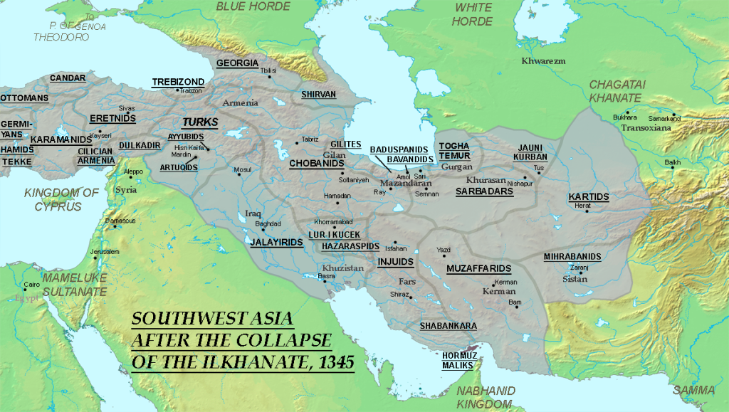 Seldžukov z Anatólie a perzifikovaných Mongolov stihla v polovici 14. storočia postupná dezintegrácia, ktorá o ďalších sto rokov umožnila nástup inej veľmoci – Osmanskej ríši. V roku 1370 sa o menšie intermezzo postaral perzsko-uzbecký vojvodca Timur Chromý (Tamerlán), ktorý zjednotil Perziu a Uzbekistan, hoci jeho sídlom bol práve uzbecký Samarkand.