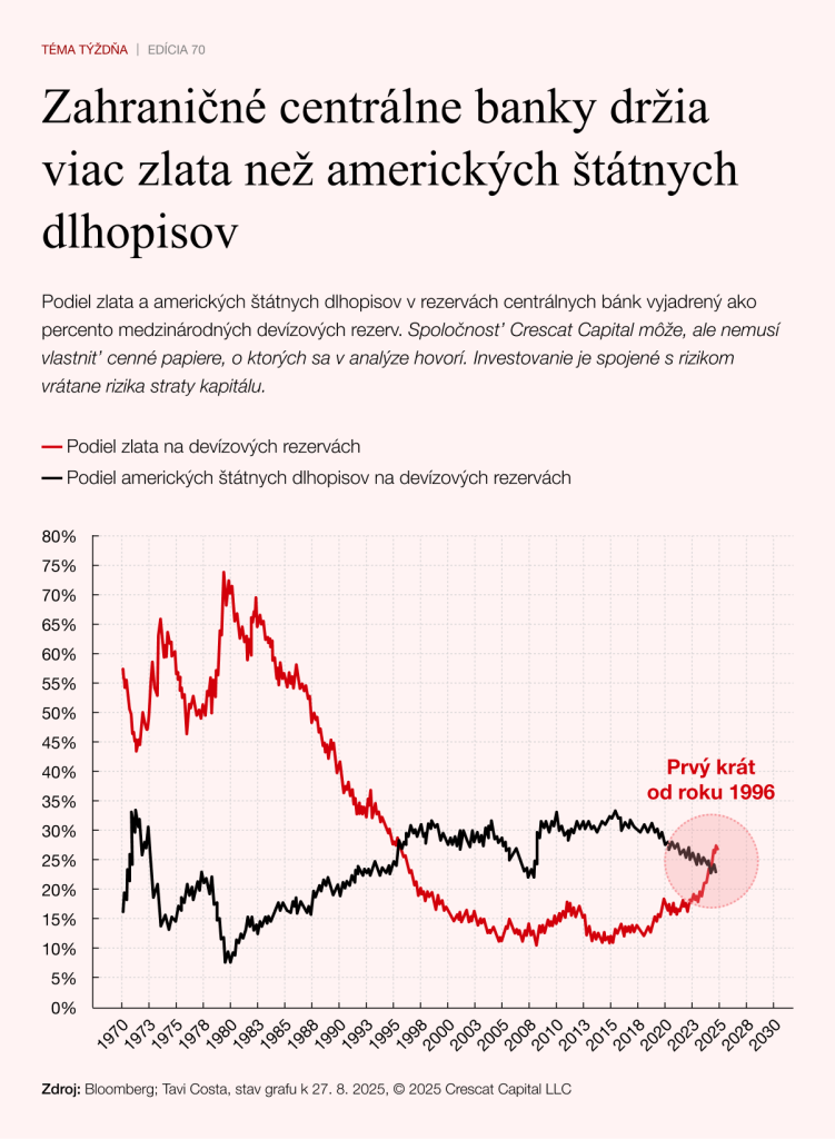 Ako teda vyzerá aktuálna situácia na menovom bojisku? Prvý rok Trumpovho mandátu zakončil situáciu tak, že zahraničné centrálne banky teraz oficiálne držia viac zlata ako amerických štátnych dlhopisov. Táto situácia nastala prvýkrát od roku 1996.