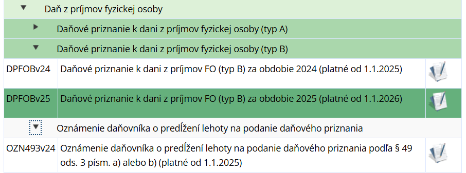 Vždy je potrebné použiť aktuálne tlačivá pre zdaňovacie obdobie roka 2025. Tie, samozrejme, nájdete po prihlásení na portál finančnej správy v sekcii s názvom Katalógy / Katalóg služieb. Nižšie nájdete sekciu Správa daní, vyberiete príslušnú daň a rozkliknete ju.