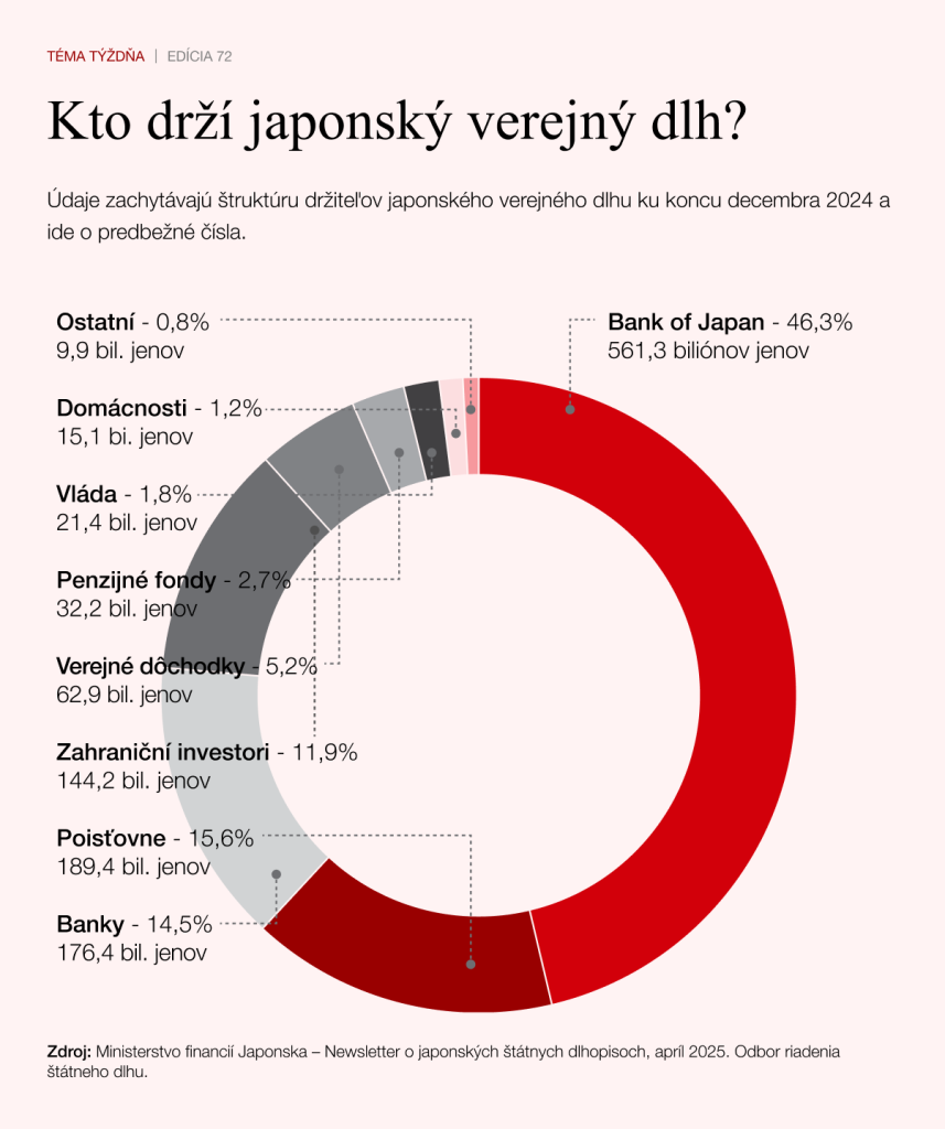 Japonský dlh je tak razom opäť témou číslo jeden. Centrálna banka sa ocitla v kliešťach, pretože potrebuje skrotiť infláciu, ale nemôže zdvíhať sadzby rýchlo, keďže by tým neúmerne predražila obsluhu štátneho dlhu a ohrozila stabilitu verejných financií.