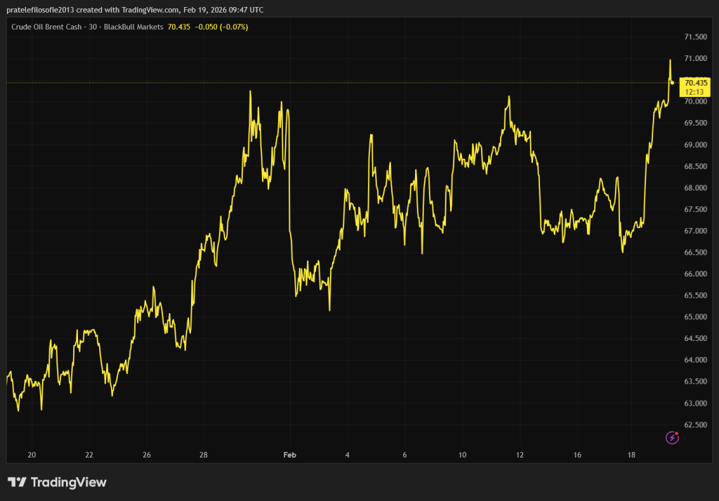 Správa o možnej zmene vo vedení ECB však nechala trhy relatívne chladné. Najväčšou udalosťou týždňa tak bol silný nárast ceny ropy. Podľa Polymarketu pravdepodobnosť útoku na Irán znova stúpla na 60 percent.