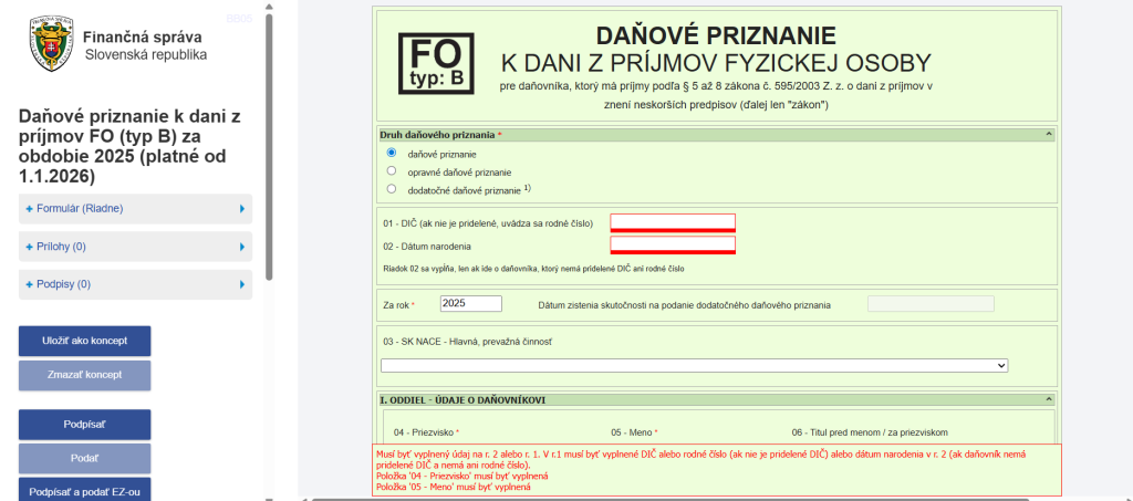 Ľudia majú obavy, či budú vedieť, ktoré kolónky, respektíve riadky, je potrebné vyplniť. Pravdou však je, že elektronický formulár vás naviguje. Nielenže zvýrazňuje po doplnení akejkoľvek hodnoty, či ste ju vyčíslili správne, ale upozorní aj na chyby.