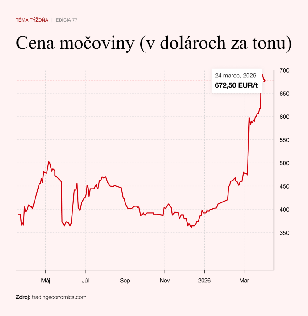 V prípade močoviny sa toto číslo dokonca blíži k hranici 50 percent. Od začiatku vojny v Iráne jej cena stúpla takmer o polovicu.