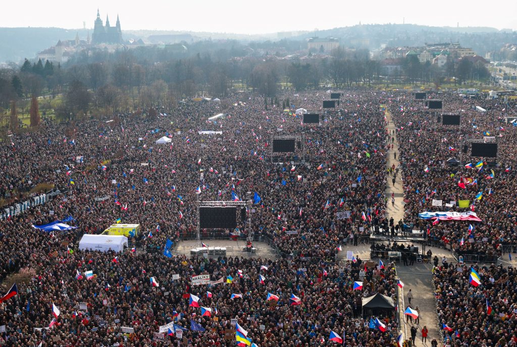 Na pražskej Letenskej pláni sa v sobotu zišli ľudia na najväčšej protivládnej demonštrácii od roku 2019. Podľa organizátorov z občianskeho združenia Milion chvilek pro demokracii prišlo približne 250-tisíc účastníkov.