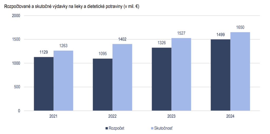 Výsledkom je, že výdavky na lieky z verejného zdravotného poistenia pravidelne prekračujú plánovaný rozpočet. Za roky 2021 až 2025 ide o sumu takmer 800 miliónov eur. Dôvodom je najmä časté využívanie výnimiek pri schvaľovaní liekov a nesprávne nastavenie cien.