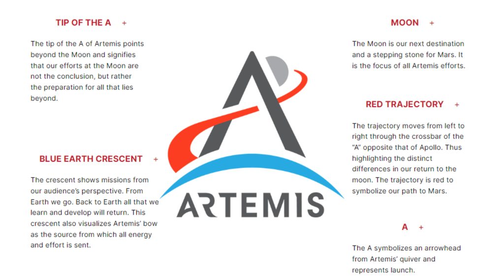Plány dostať človeka za Mesiac NASA otvorene priznala, pri vysvetlivkách okolo loga programu uviedla, že špička písmena A „mieri za Mesiac a zdôrazňuje, že naše úsilie o Mesiac nie je záverom, ale skôr prípravou na všetko, čo je za ním“.