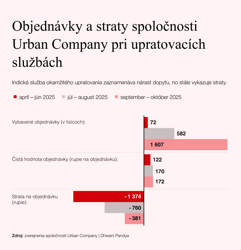 Z údajov Urban Company vyplýva, že v období od októbra do decembra prijala 1,61 milióna objednávok na domácu výpomoc, pričom na každej stratila 381 rupií (štyri doláre). Spoločnosť uvádza, že „zľavy sa postupne znižujú“, no hodnota objednávok sa musí takmer zdvojnásobiť, aby dosiahla bod zlomu.