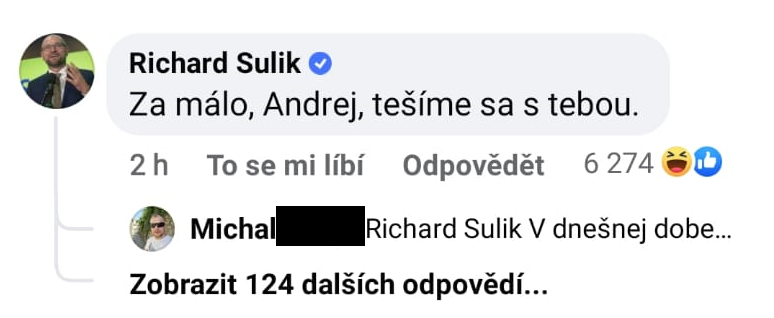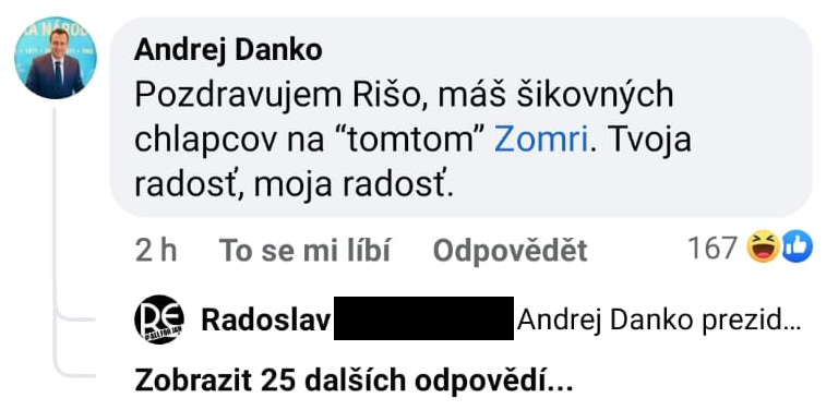 Keď Zomri zverejnilo screenshot predmetného Dankovho príspevku, okrem iných sa pod ním objavil komentár ministra Richarda Sulíka (SaS), ktorý reagoval na tvrdenie, že mu Zomri patrí. „Za málo, Andrej, tešíme sa s tebou,“ uviedol šéf rezortu hospodárstva.