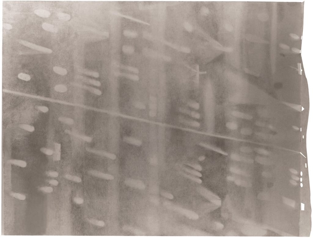 Vpravo: Mimikri pre svetlo I, 1983, ceruzka na papieri a sololite, 50 x 65 cm.