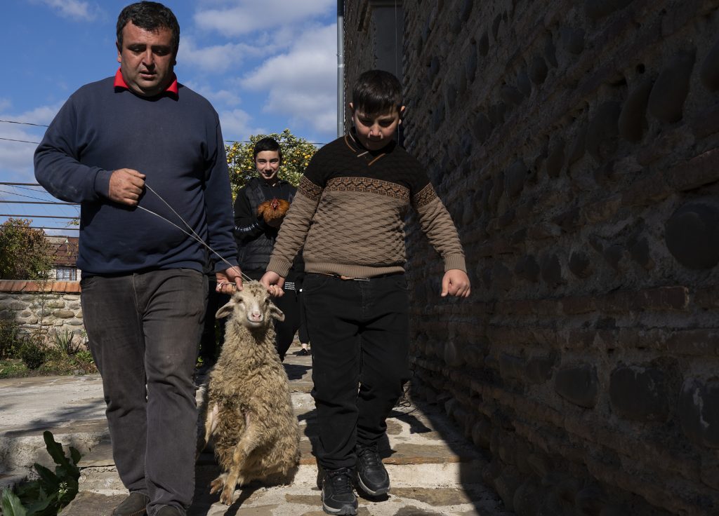 Len necelé dva týždne pred Giorgobou sme boli s fotografkou svedkami takejto obety počas terénnej práce v dedine Arbo na gruzínsko-osetskej administratívnej pohraničnej línii. Miestna rodina vtedy tiež priniesla barana a kohúta, pričom po rituáli obchádzania kostola barana zobrali domov, kde poslúžil ako hlavný chod na oslave. Naopak, kohúta vypustili v areáli chrámu na slobodu. Dostal tak šancu dožiť na slobode alebo ho môže nájsť iná rodina, ktorá ho potrebuje viac.