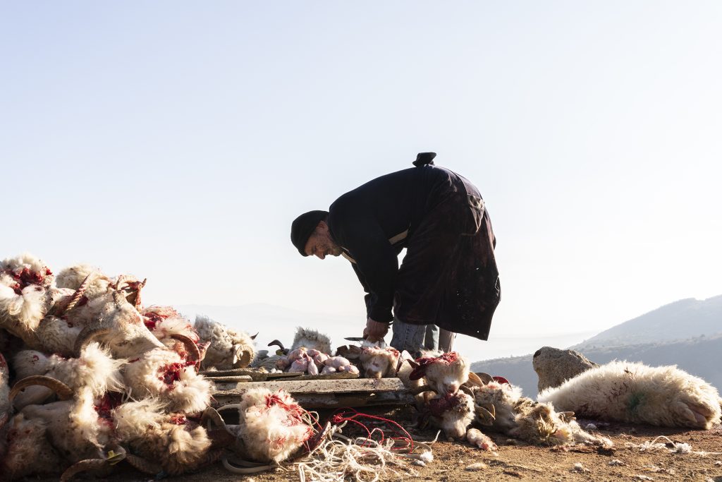 Pri budove zastavilo čierne terénne vozidlo, z ktorého vystúpil muž s veľkým igelitovým vrecom naplneným spracovaným telom nedávno obetovaného barana. Prosí nás, aby sme nefotili jeho tvár a vstupuje do budovy aj s darom, ktorý nakŕmi na jeden deň niekoľko rodín. Muž je dôkazom toho, že ešte stále sú na svete ľudia, podľa ktorých názoru musí byť pomoc blížnemu anonymná, ak má byť úprimná. Sú tiež dôkazom toho, že Giorgoba nie je len o bezhlavom zabíjaní zvierat.