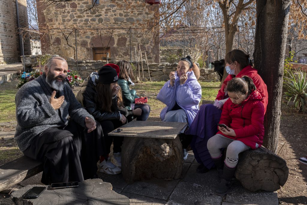 Po chvíli už začalo byť rezanie obetovaných zvierat mechanické a monotónne. Rozhodol som sa preto ísť hľadať vysvetlenie tejto na prvý pohľad nezmyselne krvavej tradície. Gruzínska pravoslávna cirkev podľa svojho oficiálneho stanoviska síce obety zvierat Bohu povoľuje, no opakovane v minulosti zdôraznila, že dáva prednosť iným formám obety. V snahe nájsť odpovede na tieto otázky sme nasadli k Zurabovi do auta a vydali sa na cestu smerom k administratívnej hraničnej línii s Južným Osetskom za otcom Giorgim.