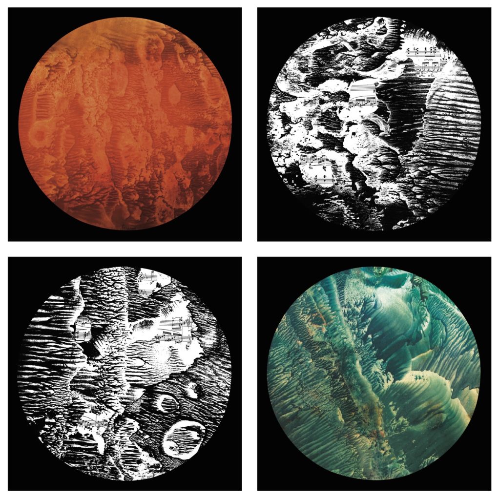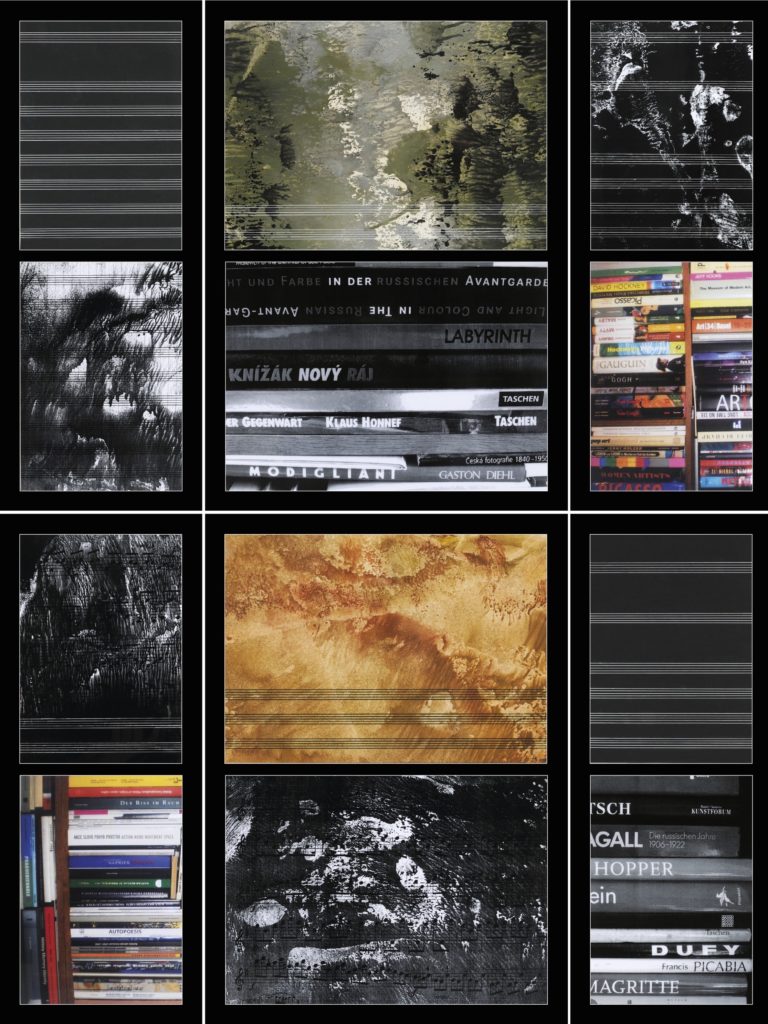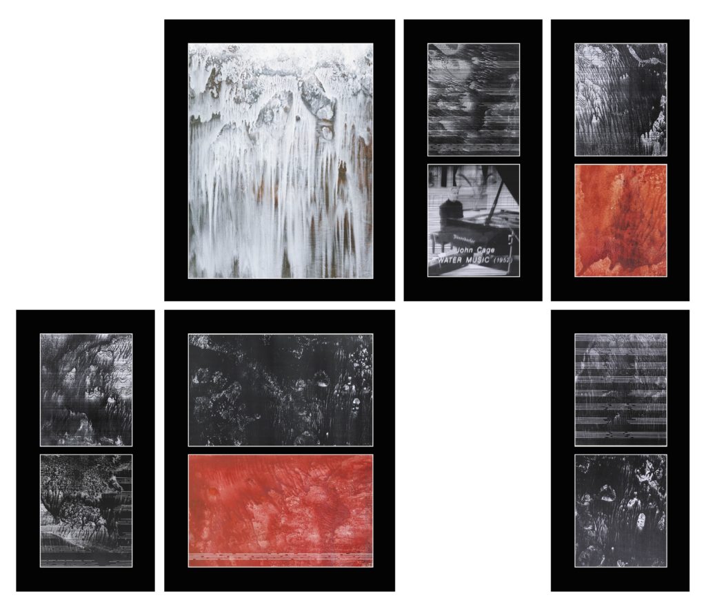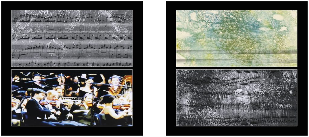 Vpravo: Partitúra A - B, 2017, kombinovaná technika, grafika a fotografia na papieri, 128 x 100 cm. Majetok autorky, foto: Anton Fiala