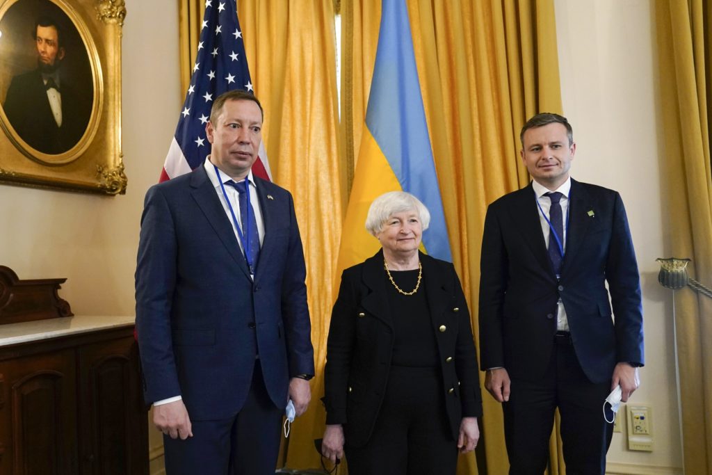 Na tohtoročnom jarnom stretnutí predstaviteľov MMF a Svetovej banky vo Washingtone vystúpil aj ukrajinský premiér Denys Šmyhaľ. Cez videohovor sa tiež pripojil prezident Volodymyr Zelenskyj. Ukrajina podľa Šmyhaľa potrebuje približne 5 miliárd dolárov mesačne v priebehu nasledujúcich piatich mesiacov na podporu svojho rozpočtu. Ukrajinský premiér tiež vyzval členov fondu, aby poskytli finančné prostriedky na obnovu Ukrajiny.