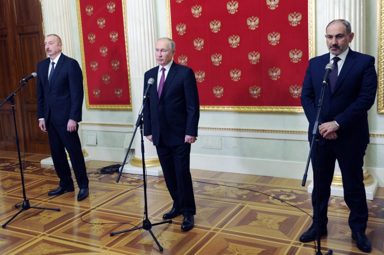 V pondelok sa v Moskve, po prvý raz od skončenia krvavej vojny v Náhornom Karabachu, stretli arménsky premiér Nikol Pašinjan, prezident Azerbajdžanu Ilham Alijev a ruský líder Vladimir Putin, aby podrobnejšie prerokovali reguláciu povojnovej situácie v regióne. Putin privítal oboch partnerov žoviálnym podaním ruky a objatím - Pašinjan a Alijev sa pozdravili len strohým „zdravstvujte“. Výsledkom ich takmer štvorhodinového rokovania je pre našinca na pohľad nudná, avšak v kontexte Južného Kaukazu potenciálne zásadná, štvorbodová dohoda o obnovení dopravnej infraštruktúry medzi zúčastnenými štátmi.