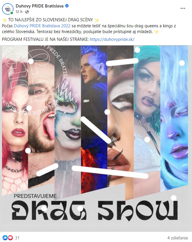 Znovu som nevedel, kde začať. V miestnosti boli deti, mohli začuť náš rozhovor, aj keď v danej chvíli o nás nejavili záujem. Navyše som nevedel, čo z tých nechutností predvádzaných pri takzvaných drag show moje poslucháčky poznajú a od čoho sa mám odpichnúť. Nejako som už len začal a celé sa to skončilo tým, že sme na seba všetci znechutene pozerali a ja som vysvetľoval, že kvôli práci sa musím zaujímať aj o takéto nechutnosti, pričom si častokrát musím googliť, čo to vlastne je, pretože normálny človek tie výrazy ani nemá odkiaľ poznať. Mimochodom, drag show prístupná pre mladistvých bude tento rok súčasťou aj bratislavského dúhového pochodu.