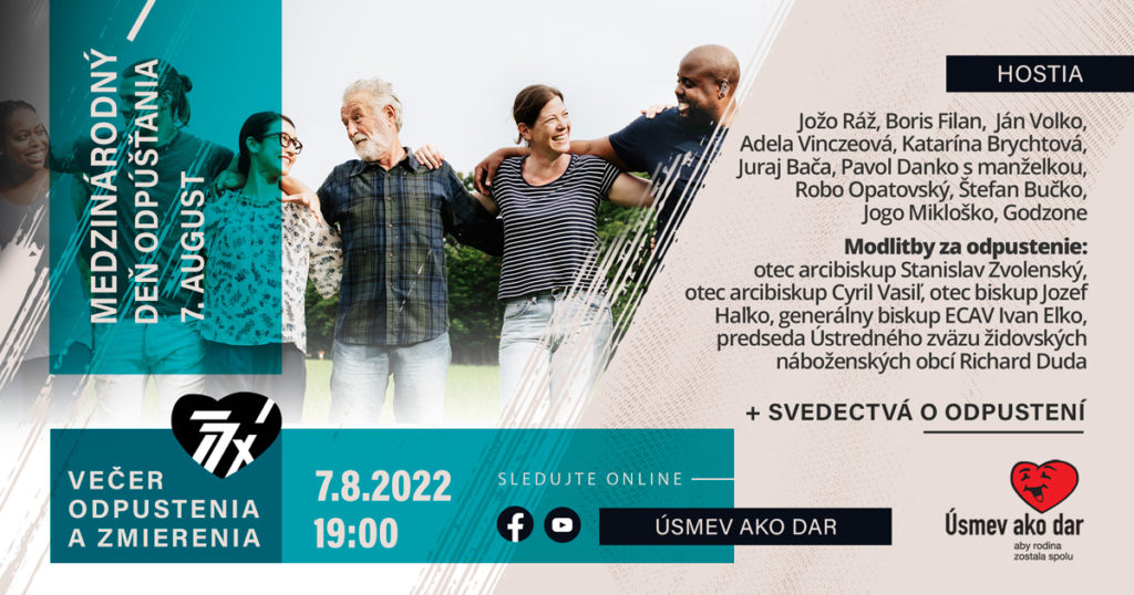 Ide o online koncert plný svedectiev o odpustení, počas ktorého vystúpia známe osobnosti a mladí ľudia z rodín i detských domovov. Úprimne sa podelia o svoje osobné príbehy, ktoré ich priviedli k odpusteniu. Budú rozprávať o tom, aké ťažké je odpustiť, no pre lepší a pokojnejší život je to veľmi potrebné.