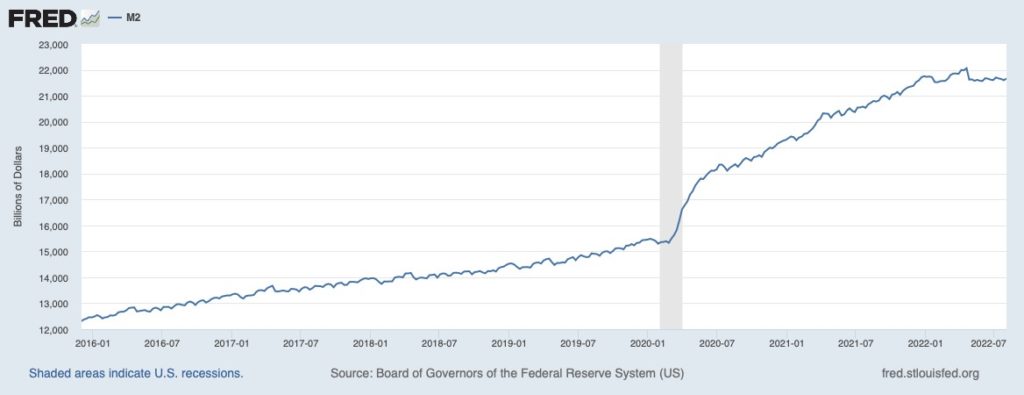 Dňa 21. septembra FED tretíkrát za sebou zvýšil úrokové sadzby o 75 bázických bodov (bps), čím sa efektívna sadzba federálnych fondov dostala na rozpätie 3 percentá až 3,25 percenta – čo je najvyššia úroveň od roku 2008 a najrýchlejší šesťmesačný nárast od roku 1981. FED signalizoval ďalšie zvyšovanie sadzieb a bodový graf očakávaní jednotlivých členov neukázal žiadne zníženie sadzieb do roku 2024. Najnovšie súhrnné prognózy FED-u odhadujú, že sadzby dosiahnu do konca roka 2022 rozpätie 4,25 percenta až 4,5 percenta a v roku 2023 rozpätie 4,5 percenta až 4,75 percenta. Tento výhľad spôsobil pád trhov. V deň zvýšenia sadzieb Dow Jones Industrial Average, S&P 500 a Nasdaq Composite klesli približne o 1,7 percenta.