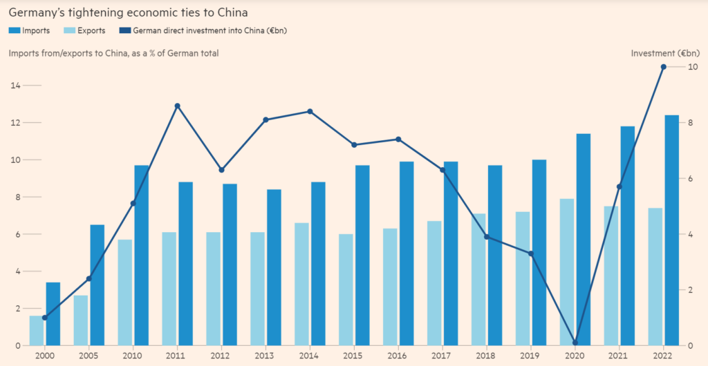 Závislosť Nemecka od ruského plynu sa pritom po ruskej invázii na Ukrajinu ukázala ako (nielen nemecká) slabina. Deutsche Welle preto píše, že tamojšiu vládu to viedlo k prehodnoteniu vzťahov s Pekingom. V Číne dnes totiž podľa denníka pôsobí približne 5-tisíc nemeckých spoločností.