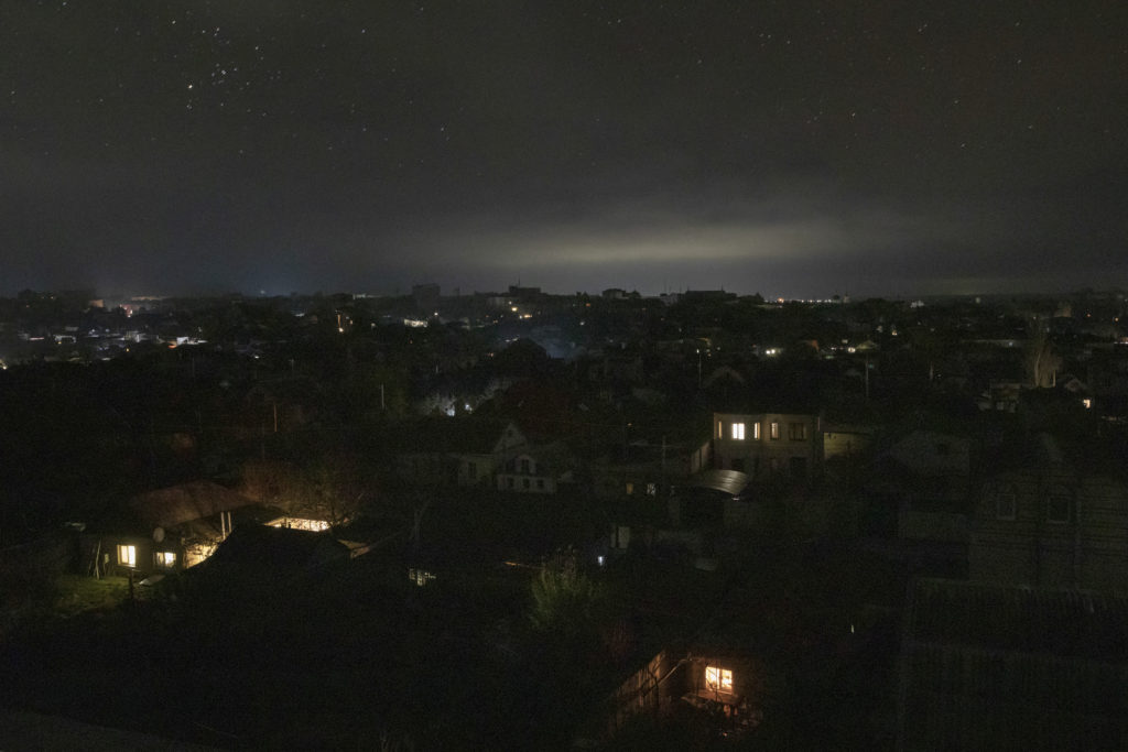Svetlá na hlavnej ulici sú zhasnuté. V riedkom zimnom vzduchu sa vznáša zápach sadzí z ohňov. Do elektrickej siete v Chersone, tak ako v mnohých iných ukrajinských mestách, neúnavne búšia ruské rakety, čím sa snažia zraziť túto krajinu na kolená, a ľudia kúria polenami, aby si zohriali domovy.