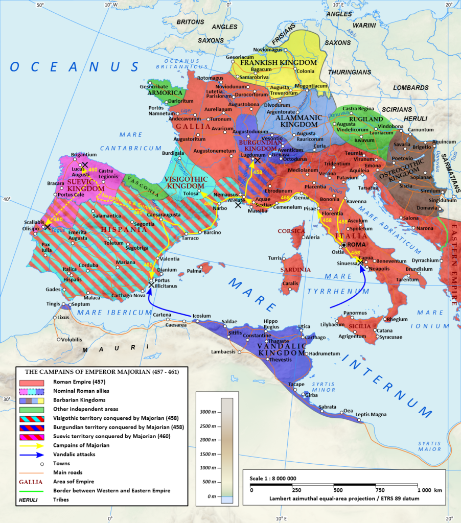 Koncom 60. rokov sa ríša scvrkla na Itáliu, časť Balkánu, juh Galie a pár území na severe Galie. K ríši ešte nominálne patrili vyplienené Noricum (dn. Rakúsko) a Mauretania (dn. Maroko, Alžirsko), kde sa držali posledné zvyšky rímskeho vojska a nejakí obyvatelia miest.