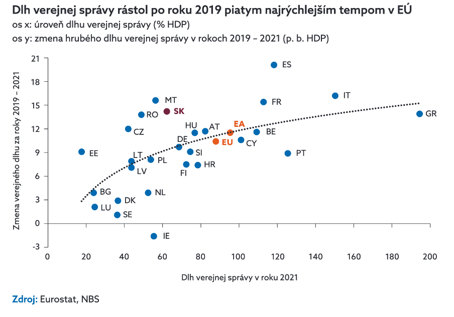 Činili sa aj predchádzajúce vlády. Kým v roku 2008 bol hrubý dlh verejnej správy Slovenska 28,6 percenta, v roku 2021 bol už na úrovni 63 percent hrubého domáceho produktu Slovenska. To je väčší pomer štátneho dlhu k HDP, než keď sme mali na Slovensku naposledy menovú krízu na prelome tisícročí.