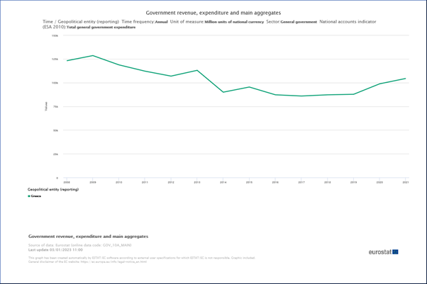 V roku 2009 boli grécke verejné výdavky 128 miliárd eur. V roku 2017 to bolo len 86 miliárd eur – a to ešte bez upravenia o infláciu. To je nominálny pokles o 33 percent. Na porovnanie, na Slovensku v rovnakom období výdavky narástli o 18 percent.