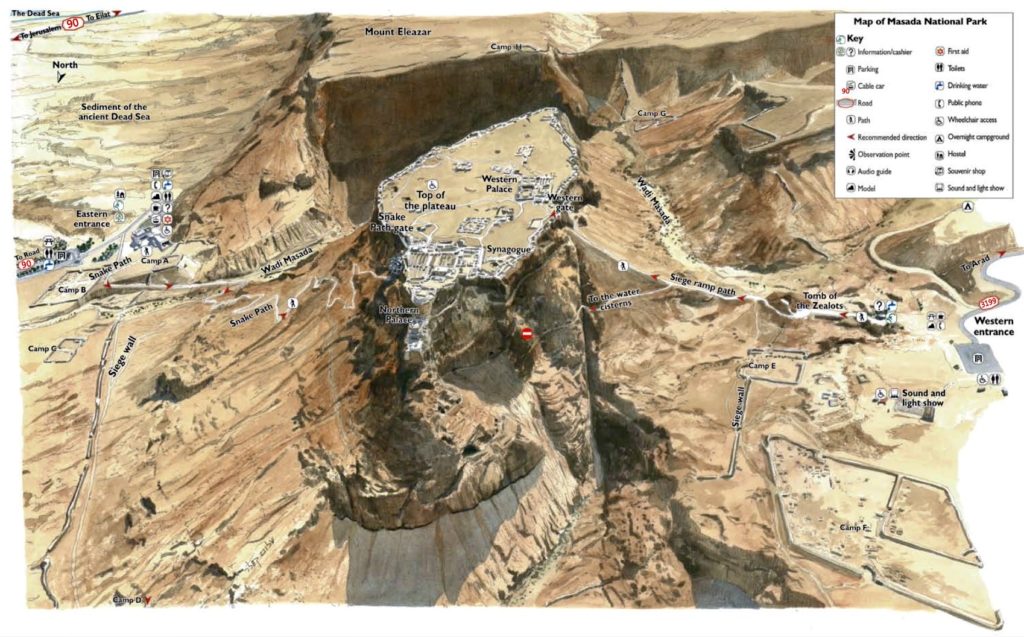 Masada je úchvatné miesto. Osobitne za úsvitu, keď sa slnko v rannom tichu postupne dvíha na obzor a slnečné lúče z východu plynule sfarbia ruiny pevnosti i okolité kopce svojou magickou žiarou. Vtedy možno navôkol obdivovať pôsobivú hru svetiel a farieb.