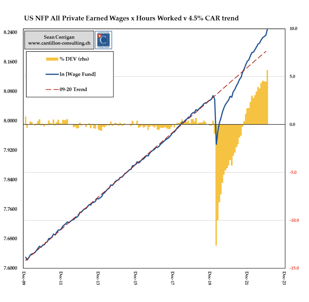Rýchlosť rastu amerických miezd sa síce spomaľuje, stále je však vysoko nad predpandemickým trendom.