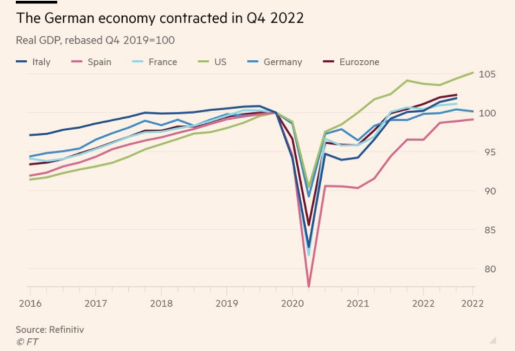 Hrubý domáci produkt Nemecka, Talianska, Švédska a Rakúska sa podľa rýchleho odhadu v poslednom štvrťroku 2022 zmenšil. Česká republika a Estónsko zaznamenali pokles produktu dva štvrťroky za sebou, tak sú už aj oficiálne v recesii.