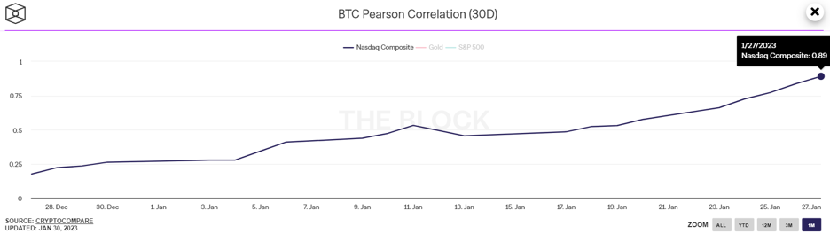 Pozitívna korelácia s burzou Nasdaq sa posilňuje na pozadí najlepšieho mesiaca od roku 2001.