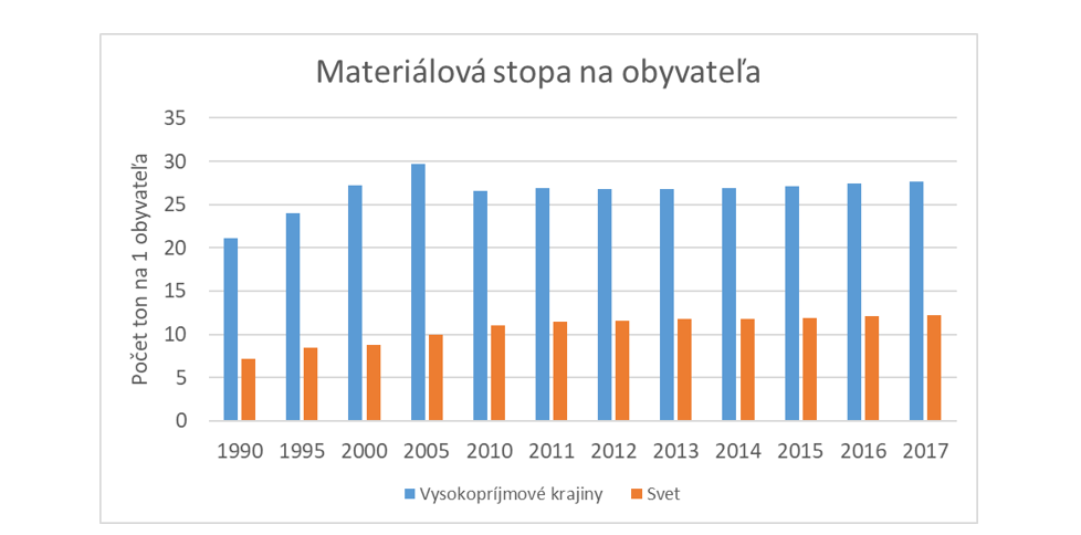 Celý príbeh by bolo dobré odštartovať niekoľkými číslami z rozvinutých vysokopríjmových krajín. Môžeme sem zarátať väčšinu európskych štátov, USA, Kanadu, Japonsko a zopár ďalších. Ide približne o 1 až 1,5 miliardy ľudí (podľa prísnosti kritérií), ktorí si žijú na pomerne vysokej nohe. S vysokou životnou úrovňou však ide ruka v ruke vysoká materiálová spotreba, respektíve materiálová stopa (angl. material footprint). Spomenutý indikátor meria vo svojej podstate to, koľko globálnych zdrojov bolo potrebných na uspokojenie potrieb obyvateľov toho-ktorého štátu, prípadne regiónu.