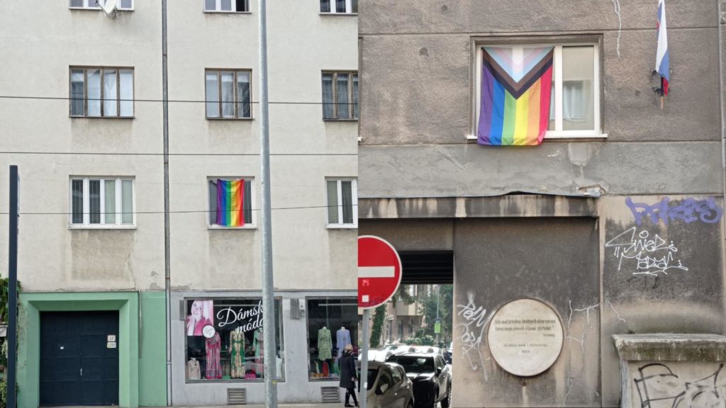 S pribúdajúcou vzdialenosťou od historického centra mesta frekvencia výskytu dúhy klesá a skôr než na budovách kancelárií ju nájdeme na bytovkách: napríklad na Špitálskej a Björnsonovej ulici. Takzvaná „vlajka pokroku“ („progress flag“) na Björnsonovej visí priamo nad pamätnou tabuľou z roku 1946 s úryvkom básne prvého podpredsedu Matice Slovenskej Karola Kuzmányho: „Kto nad krivdou biednych slzu vyroní, tomu moja pieseň slávou zazvoní“.