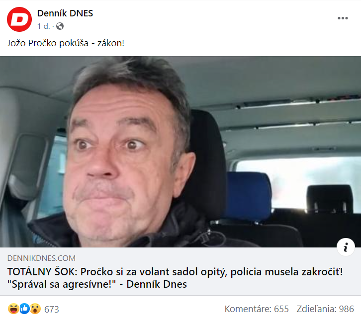 Nikde v texte sa pritom neuvádza, že ide o incident z roku 2007 a článok je prezentovaný ako aktuálna udalosť. Aj na Facebook ho Denník Dnes umiestnil iba túto stredu s popisom „Jožo Pročko pokúša – zákon“.