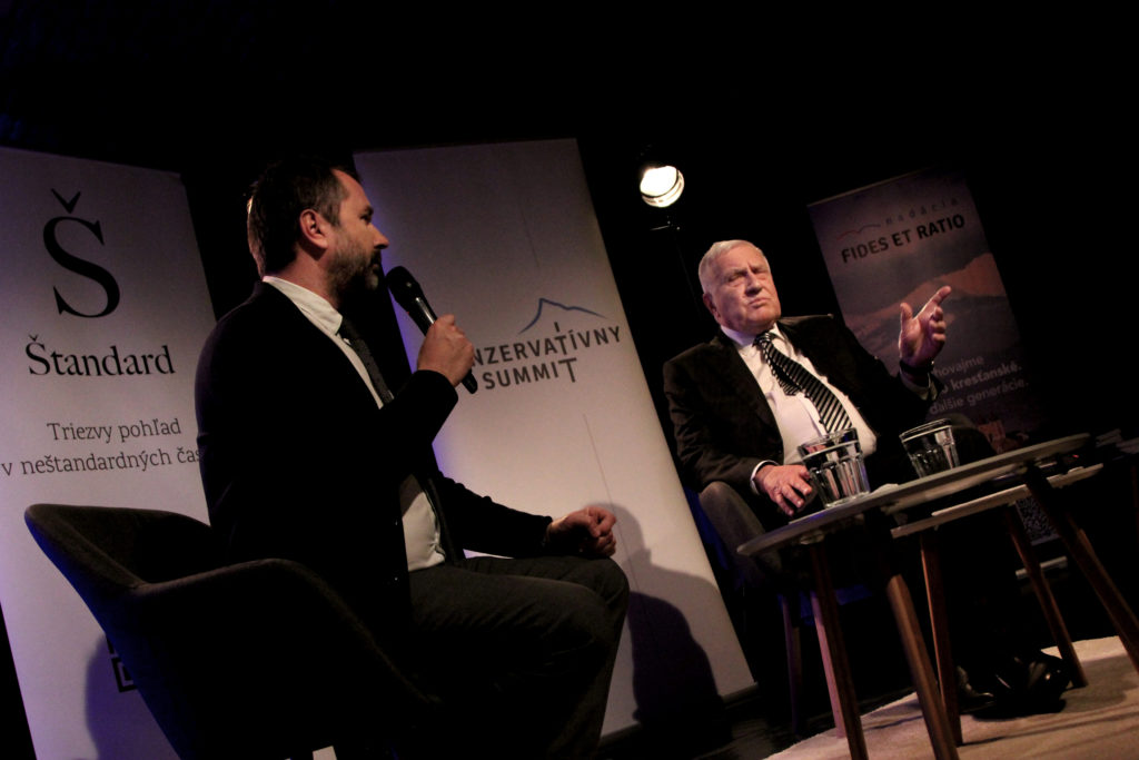 Najskôr krátky úvod. Keď sme Václava Klausa pozvali na Slovensko, trval na nejakom verejnom vystúpení. Ponúkol som mu možnosť prísť do debaty Do kríža, on to uvítal, ale dodal, že ešte treba to verejné vystúpenie. Chcel stretnúť ľudí, diskutovať a aj sa s ľuďmi zabaviť.