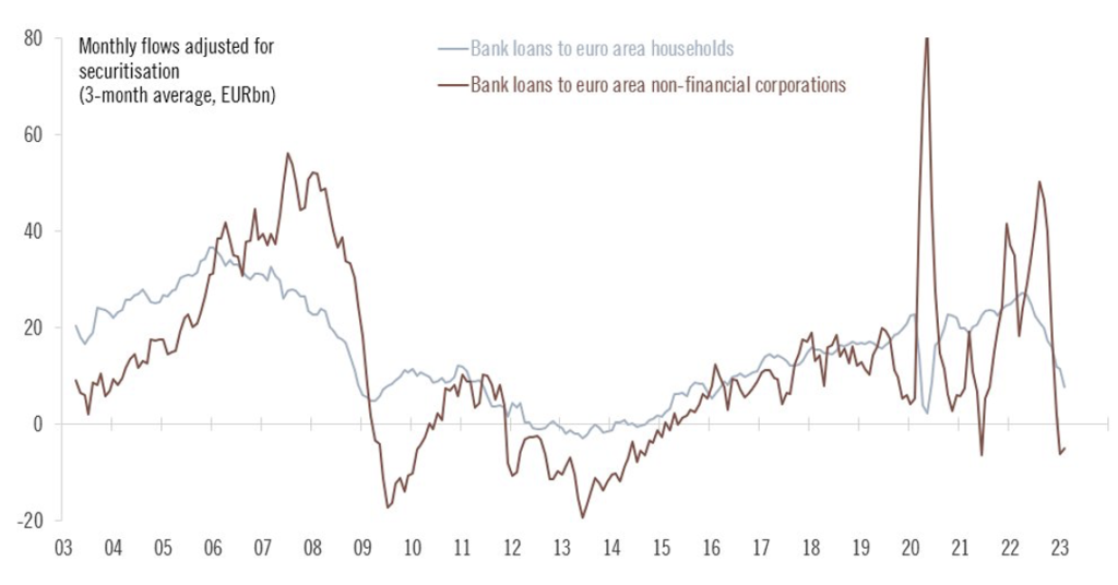 K nerealizovaným stratám na dlhopisoch v portfóliách bánk držaných do splatnosti a poisťovní sa začnú pridávať straty zo zlyhaných úverov poskytnutých podnikom a domácnostiam, ktoré zmenu finančného cyklu nezvládnu. Rastúce úroky už zredukovali hodnotu dlhodobých aktív, na ktoré boli úvery poskytnuté a ktorými dlžníci ručia, ako sú technológie, rezidenčné a komerčné nehnuteľnosti. Tie klesajú v USA, ako aj v Európe.