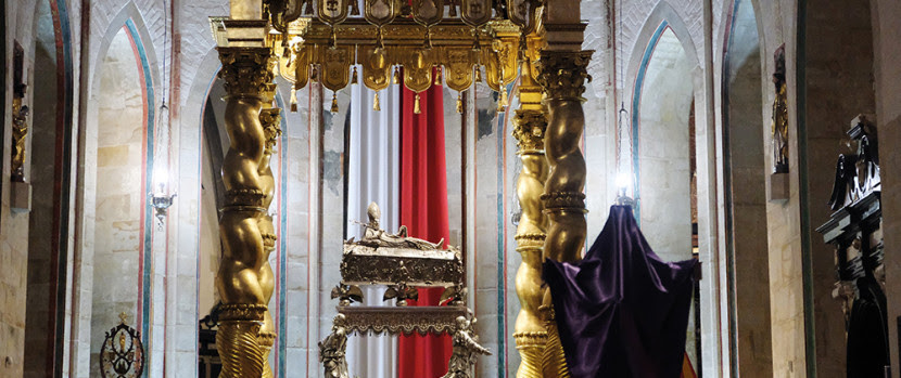 Potom som už smeroval ku katedrále. Vedel som, že tam musím postáť pri dverách, ktoré sú v každom prehľade stredovekého umenia. Tunajšie dvere, Drzwi Gnieźnieńskie, hovorilo sa im aj Porta Regia – kráľovské dvere, asi nimi vstupoval do katedrály aj český kráľ Václav II., keď sa tu v roku 1300 nechal korunovať na poľského kráľa. To bola posledná korunovácia v Hnezdne. Románske dvere z konca 11. storočia sú životopisom svätého v dvakrát deviatich obrazoch: svätý Vojtech vyháňa zlých duchov, svätý Vojtech oslobodzuje otrokov, ktorých držia zviazaných židia (prví židia v stredoeurópskom umení), svätý Vojtech zavraždený Prusmi, hlava svätého Vojtecha na kole niekde v Prusku… Tých hláv je teda niekoľko, v úctivej vzdialenosti som postál pri tej poľskej, ktorá údajne bola v barokovom náhrobku z konca 17. storočia. Je celá zo striebra, svätý Vojtech tam leží v trochu frivolnej podobe na poduškách, na kolenách má rozčítanú knihu, akoby bol po dobrom obede. Veľmi poľsky vyzerajúci ochrancovia zhromaždení v pokľaku okolo neho, v ruke meč a fúzy ako zo Sienkiewiczových románov. V roku 1986 sa nejakí zločinci dali na noc zamknúť v katedrále, aby náhrobok rozrezali a kus z neho vyniesli von. Odišli s ním do Gdaňska, tam striebornú sochu roztavili a striebro sa pokúšali predať. O pár týždňov ich chytili a sú hádam doteraz vo väzení. Nedávno o tých svätokrádežných lotroch natočili film. Neboli to Česi… Našťastie.