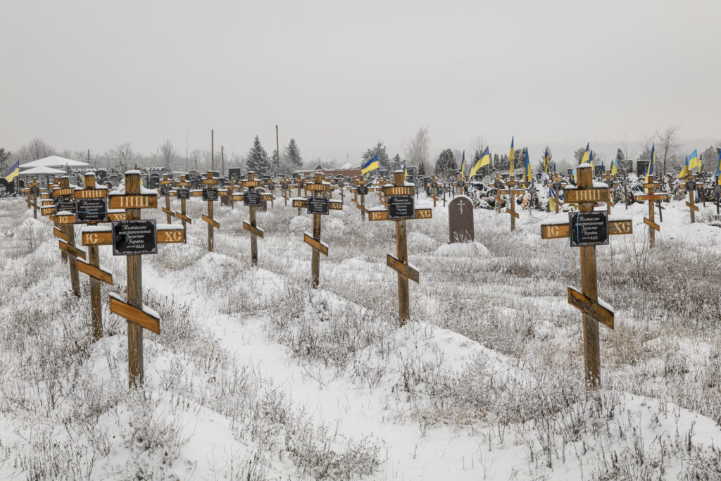 Od minuloročnej invázie Ruska sa cintorín v plnom rozsahu stále rozrastá.