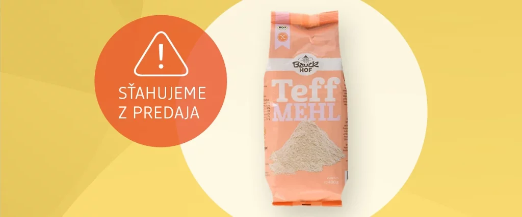 Išlo o Bauckhoff teffovú celozrnnú múku s hmotnosťou 400 gramov. Jej minimálna trvanlivosť uvedená na obale je do 22. 11. 2023 a 9. 1. 2024. Dodávateľ výrobku je Bauckhoff GmbH a predávali ju v obchodnom reťazci dm.