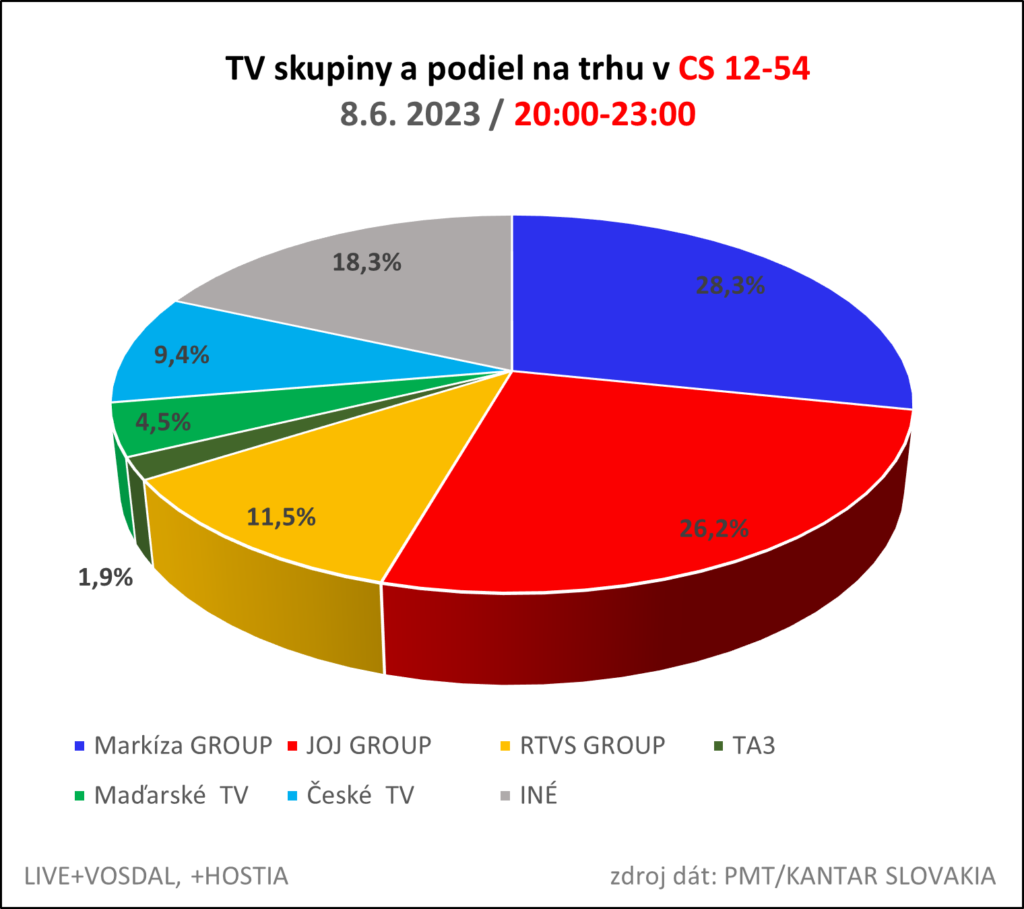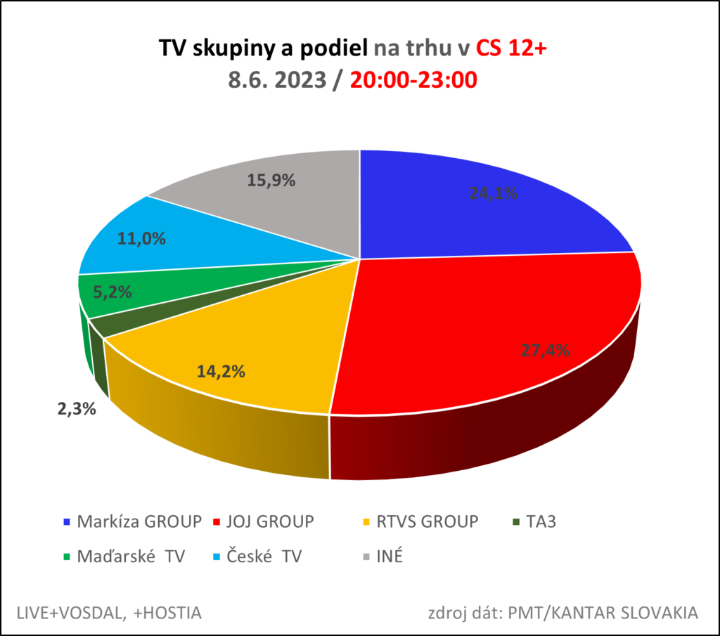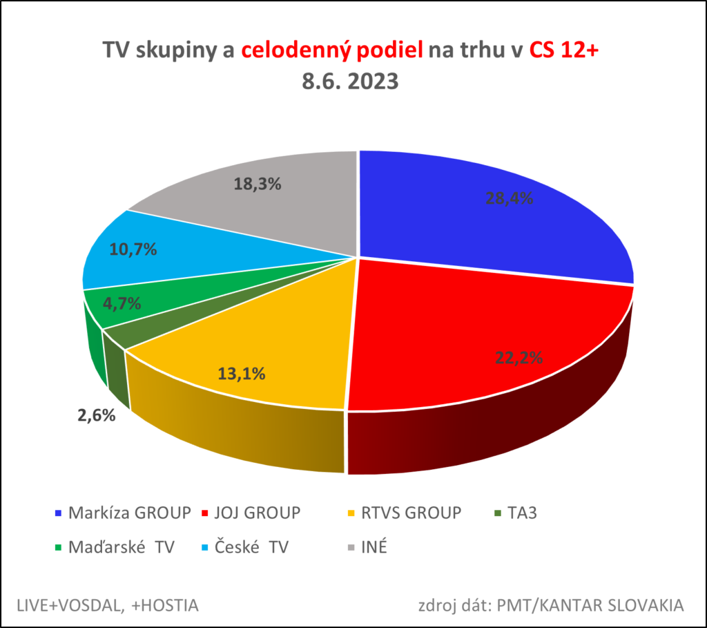 Výraznú zásluhu na tom mali opäť malé modro-žlté stanice, ktorým sa dokonca podaril ďalší zaujímavý zárez, keď spoločne dosiahli vyšší podiel ako TV JOJ (12,9 percenta). V priebehu niekoľkých dní je to už ich tretie víťazstvo nad hráčom vyššieho komerčného rangu. Ťahúňom víťazného markizáckeho záprahu v celodenných podieloch bolo Dajto (6 percent) a slušným výkonom prispeli aj Markíza Krimi (3,7 percenta) a Doma (3,5 percenta).