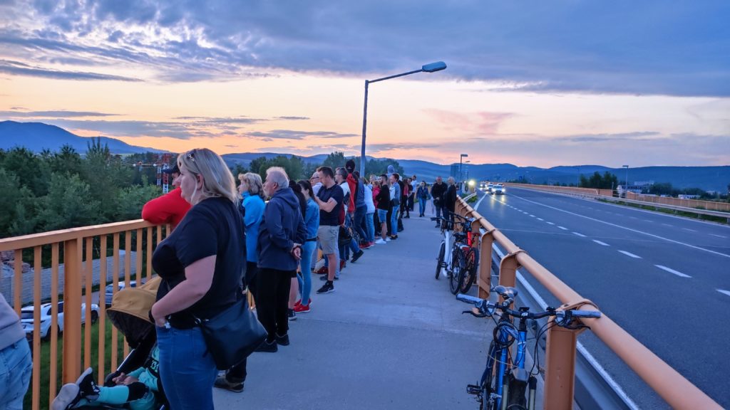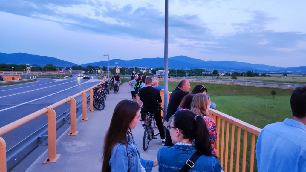 Koncert sledujú aj ľudia z mosta pri Nozdrkovciach.