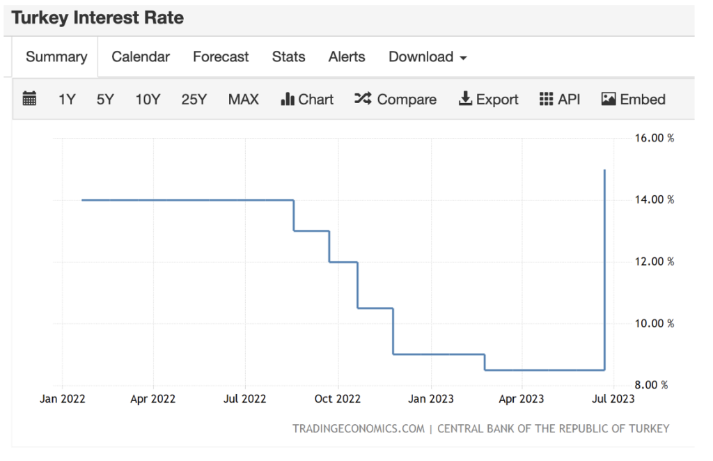 Zvýšenie základného úroku prichádza neskoro a pri oficiálnej 40-percentnej cenovej inflácii v Turecku je to stále príliš málo. Ale áno, je to lepšie, ako doterajší „boj“ s cenovou infláciou tamojšieho prezidenta Erdogana a to znižovaním základného úroku a policajnými raziami v obchodoch, ktoré si dovolili zdvíhať ceny.
