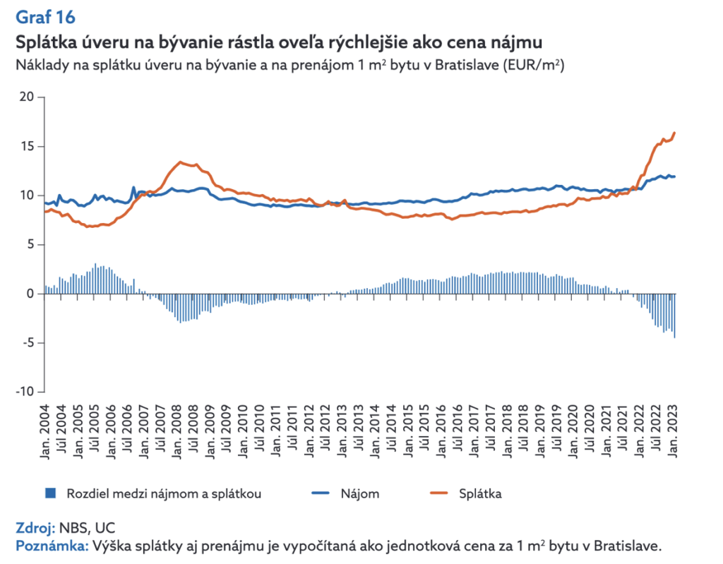 Splátka úveru na bývanie rástla v poslednom čase rýchlejšie a dnes je výrazne vyššia ako nájom. „Nebudem vyhadzovať peniaze za úroky do vrecák bankárom,“ platí skôr dnes. A nájmom ušetrené peniaze môže človek ešte investovať do aktíva s lepším potenciálom budúceho zhodnotenia ako sú slovenské rezidenčné nehnuteľnosti.