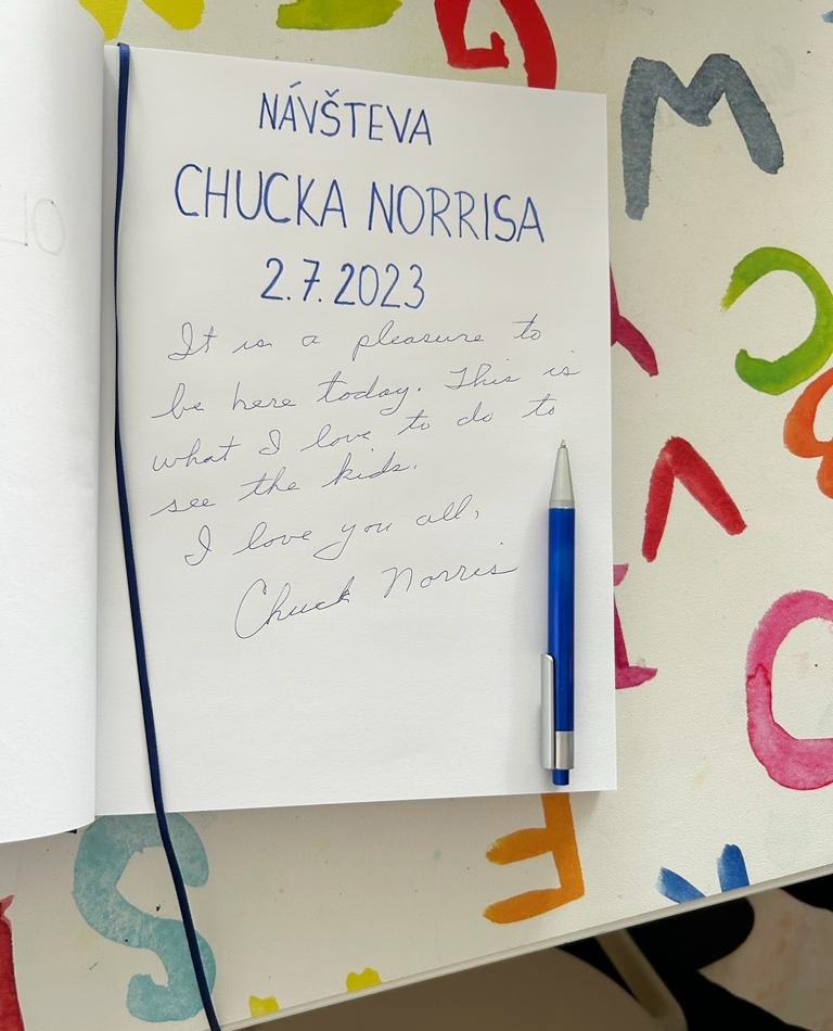 Herec navštívil oddelenie Kliniky pediatrickej onkológie a hematológie. V tajnosti a skromnosti prišiel spolu s manželkou a synom. Deťom na oddelení priniesli šiltovky, ktoré Chuck s radosťou podpisoval a so všetkými sa srdečne fotil. Bolo to stretnutie plné nadšenia, radosti, smiechu a objatí.