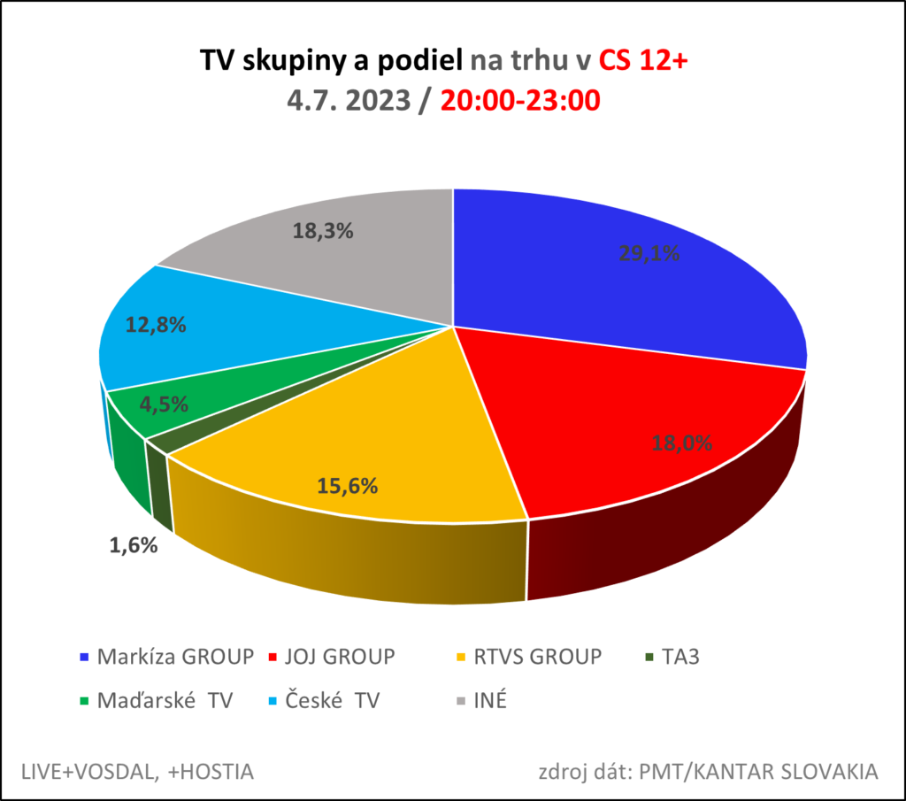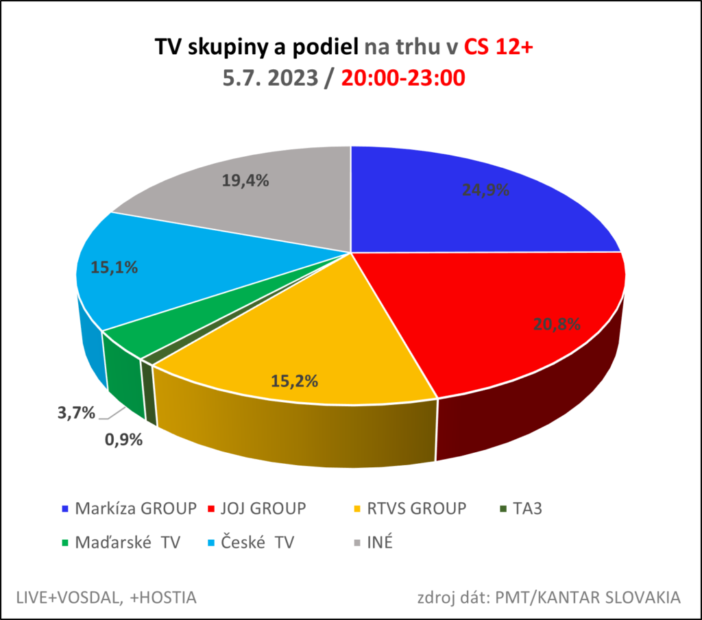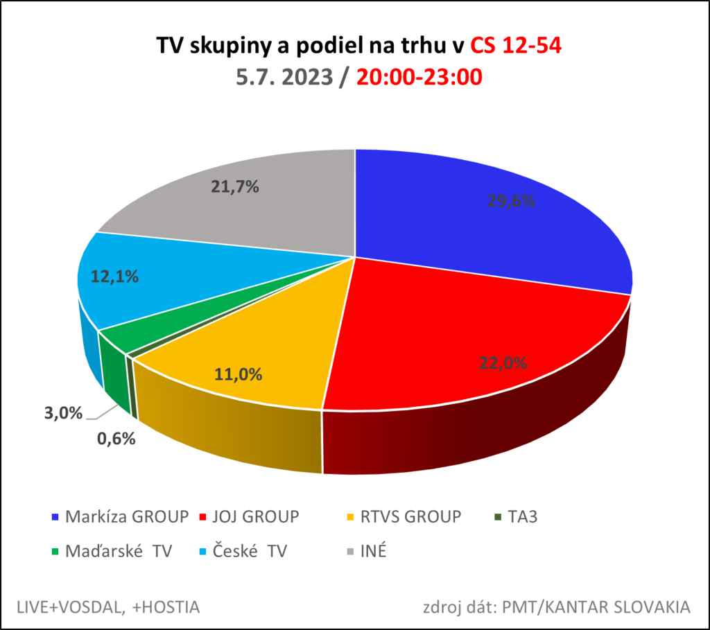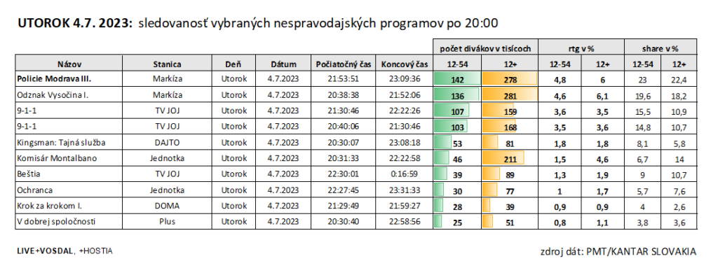 Štandardné rozloženie síl medzi večerné formáty v cieľovke 12 – 54 však svojím výkonom jemne narušil seriál Policie Modrava III., ktorý nielenže dorovnal najlepší tohoročný rating značky Policie Modrava z apríla, ale zároveň sa s ratingom 4,8 percenta a podielom na trhu 23 percent predviedol ako najsledovanejší program večera.